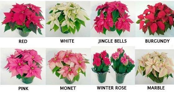 - Не все пуансеттии имеют красный цвет. Хотя этот оттенок считается классическим, можно встретить также белые, кремовые, желтые, розовые и даже абрикосовые варианты.