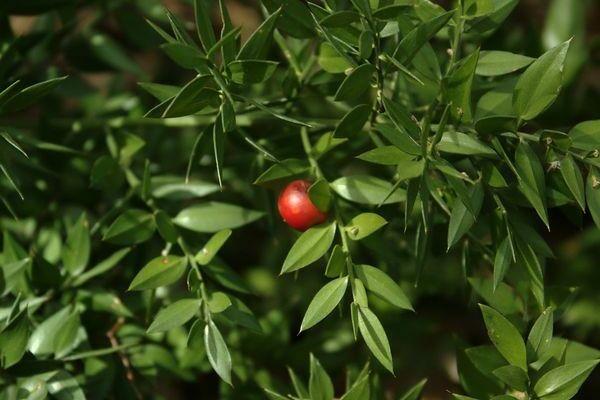 Корень рускуса «ползет» по поверхности земли. А ярко-красные ягоды можно употреблять в пищу.