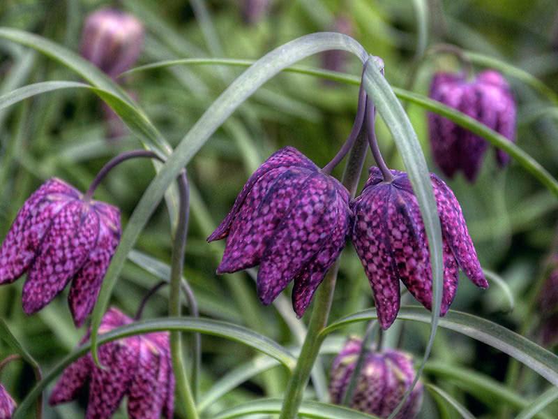 Уникальный внешний вид: Рябчик шахматный (Fritillaria meleagris) известен своими эффектными цветами, которые имеют характерный шахматный узор. Цветки могут быть как белыми, так и пурпурными, и их необычная форма привлекает внимание садоводов и любителей цветов.