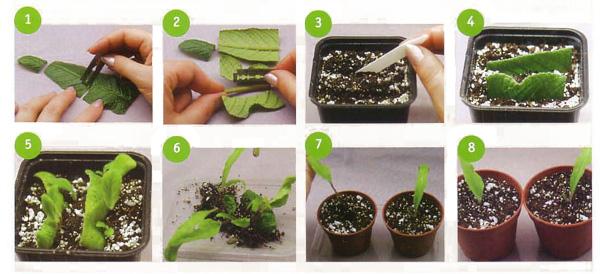 Стрепс размножается двумя способами: с помощью семян и вегетативным методом. Самый простой способ – это деление взрослых растений на три части, которые затем высаживаются в подходящий грунт до уровня шейки корня. Места срезов рекомендуется присыпать мелко размолотым углем. Если вы решили размножать растение с помощью листа, его следует углубить в почву на 10 мм. Емкость накрывают стеклом или пленкой, чтобы создать эффект теплицы. Лист нужно проветривать каждый день. Оптимальная температура для содержания – 24 градуса.