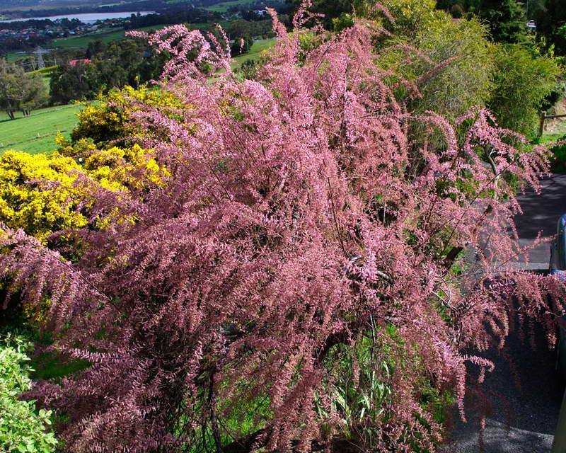 Эта разновидность отличается особенно густой кроной, состоящей из изогнутых побегов с красноватой корой. Листья растения имеют ярко-зеленый цвет и располагаются вдоль всего стебля. Уход за четырехтычинковым Тамариксом не требует особых усилий, что делает его популярным выбором для оформления дачных участков и городских ландшафтов.
