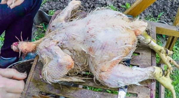 Обработка тушек сухим способом приемлема для 1-2 птиц: они не успевают остыть, и перья легко отделятся. Если произошла непредвиденная задержка в работе, тушки ошпаривают кипятком и удаляют оставшееся оперение. Такой способ называется комбинированным.