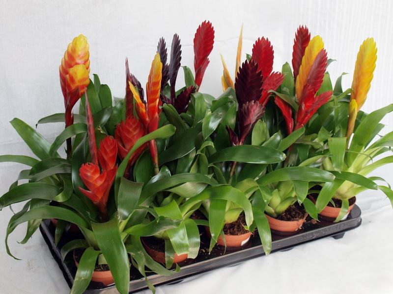 Представляет собой семейство Бромелиевых. Особенно выделяется растение высотой 70 см с яркими прицветниками. Для обильного цветения необходимо поддерживать стабильную температуру в пределах +19…+28 °С и регулярно увлажнять розетку.
