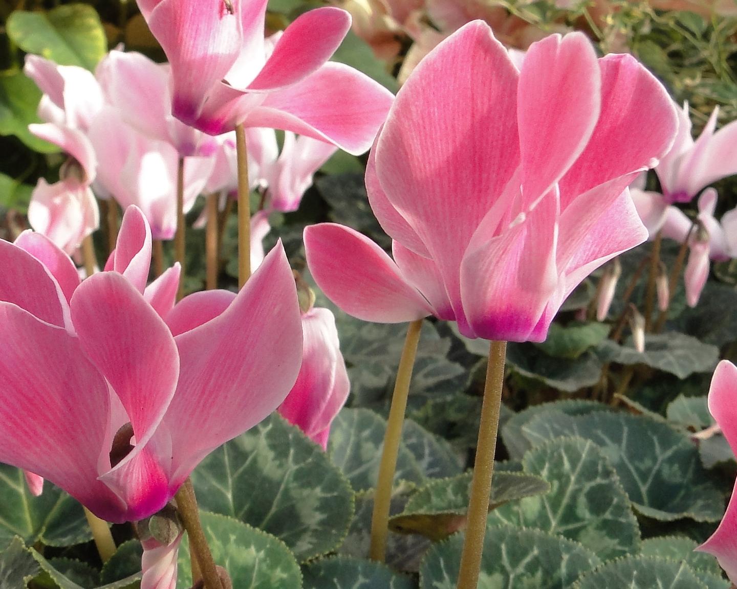 Разнообразие цветов: Цветы цикламена могут иметь разнообразные оттенки — от белого и розового до ярко-красного и фиолетового. Некоторые сорта имеют уникальные узоры на лепестках, что делает их особенно привлекательными для любителей цветов.