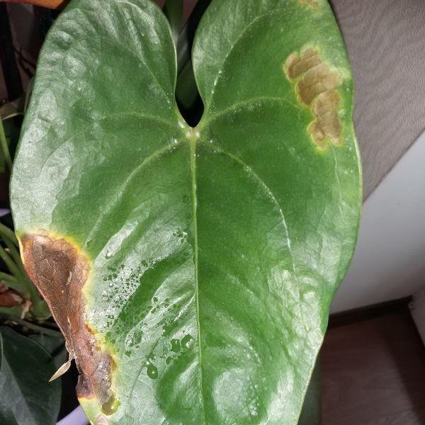 Влияние вредителей и болезней: Антуриумы могут подвергаться атакам различных вредителей, таких как паутинные клещи и щитовки, которые высасывают сок из растения. Это может привести к пожелтению и чернению листьев. Также грибковые инфекции могут вызывать увядание и чернение, особенно в условиях высокой влажности.