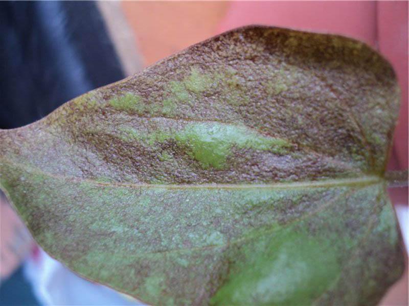 - При появлении черных пятен необходимо опрыскать листья фунгицидом с высоким содержанием меди. Если наблюдается ржавчина, следует обработать и здоровые растения, чтобы повысить влажность, а пораженные листья с пятнами нужно полностью удалить и утилизировать.