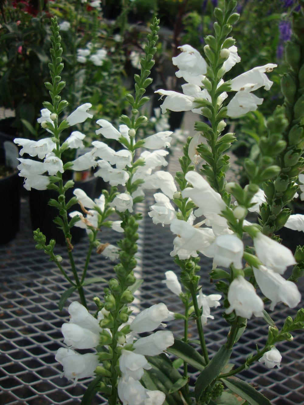 - Физостегия виргинская (physostegia virginiana Alba). Высота кустов этого сорта достигает 0,8 м. Цветы имеют белый оттенок, а листья — зубчатые по краям и гладкие в центре.