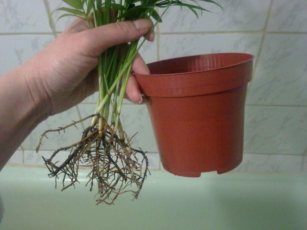 Если не заботиться о растении должным образом, не контролировать состав почвы в горшке и чрезмерно увлажнять его, корни могут начать гнить. В такой ситуации единственным выходом станет пересадка хамедореи.