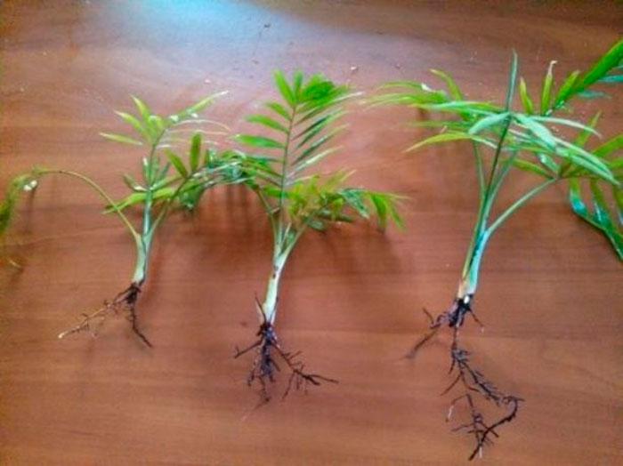 Данная техника подходит исключительно для тех видов хамедореи, у которых крона образована в форме куста с несколькими стволами. Любой из корневых отпрысков у взрослой пальмы (старше 3 лет) можно осторожно отделить и немедленно пересадить в смесь торфа с песком.