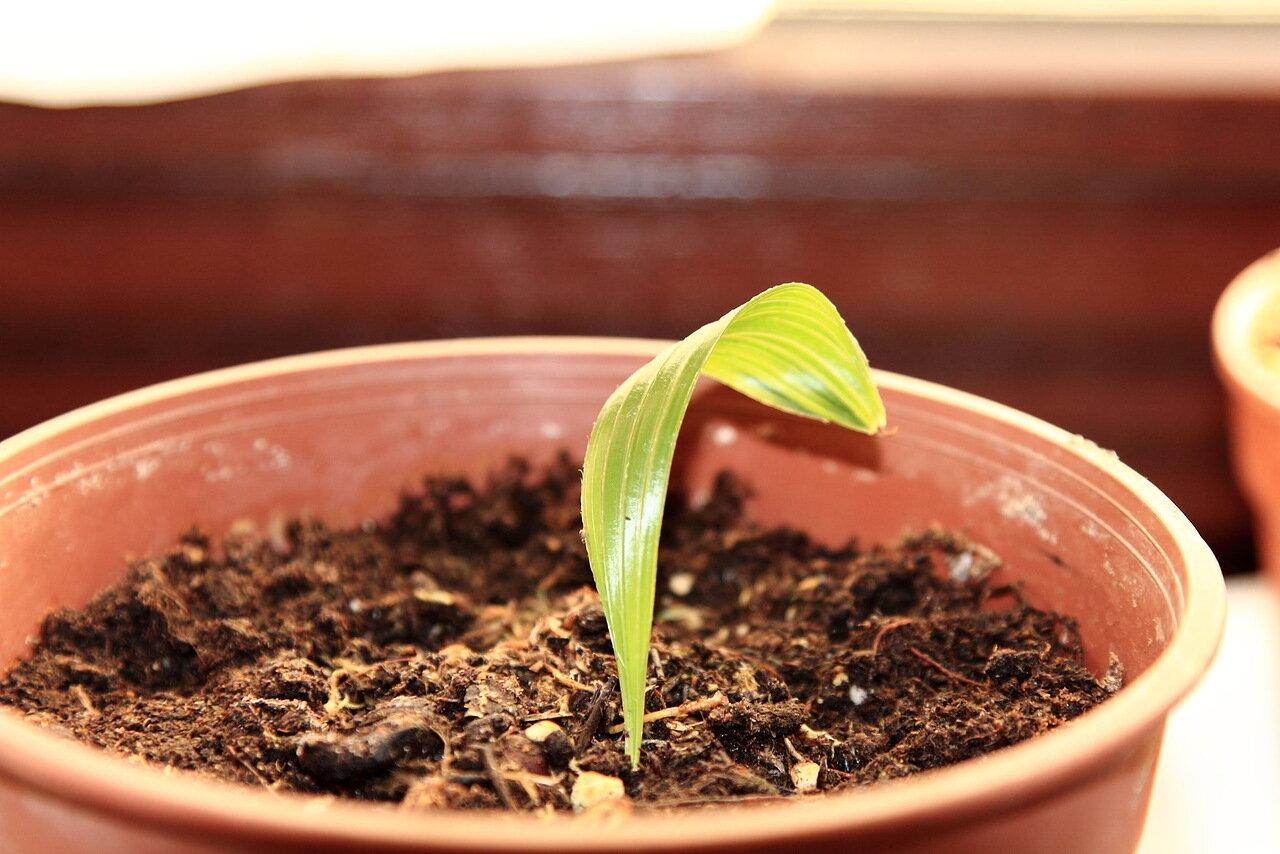 Оптимальная температура для проращивания составляет +22..+25 °С. Самые свежие семена прорастут через 2 месяца, в то время как семена, близкие к окончанию срока годности, могут взойти только через 6-8 месяцев. Пересаживать росток в новую тару следует, когда его лист достигнет длины 4 см.