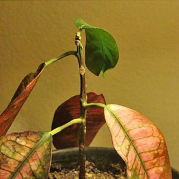 Чувствительность к условиям окружающей среды: Кротон (Codiaeum variegatum) очень чувствителен к изменениям в условиях ухода. Резкие перепады температуры, недостаток света или слишком сухой воздух могут привести к опадению листьев. Это защитная реакция растения на стресс.
