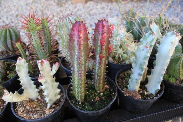 | Молочай треугольный (Африканское молочное дерево) | ‘Rubra’, ‘Green’, ‘Variegata’ | Яркий свет, умеренный полив, хорошо переносит сухой воздух, чувствителен к холоду. |