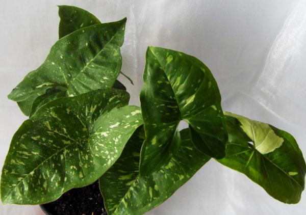 На основе сингониума ушковидного и ножколистного были выведены несколько популярных сортов: