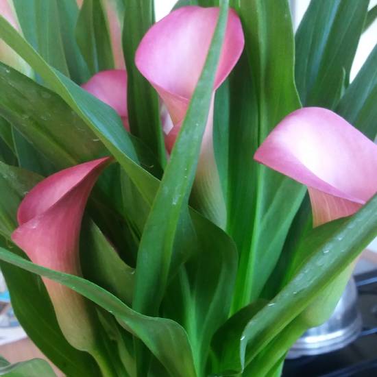Условия для роста: Каллы предпочитают яркий, но рассеянный свет и теплые температуры. Они могут расти в домашних условиях, но важно обеспечить им достаточную влажность. Полив следует проводить регулярно, но избегать застоя воды, чтобы предотвратить гниение корней.