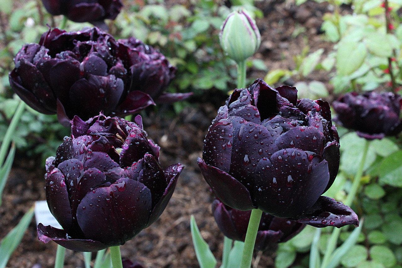Эти цветовые вариации бутонов можно увидеть на множестве садовых цветников. Фиолетовые тюльпаны обладают разнообразными оттенками: от светлых и нежных до глубоких и почти черных. Среди них особенно выделяются такие сорта, как «Королева ночи», «Перпл Кристал», «Валфловер» и «Блэк Хиро».