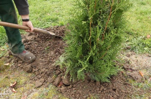 Важно! Пересадка на постоянное место осуществляется на третью весну. К этому времени молодые туи вырастут до 50 см.