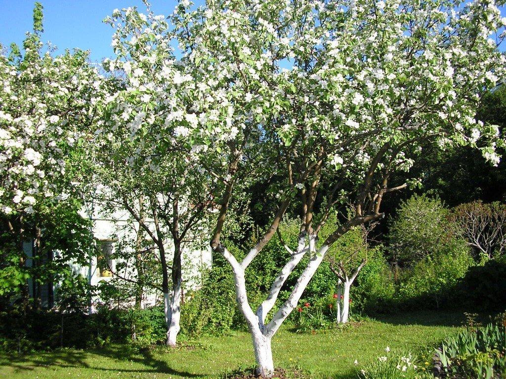 - Элементарная побелка поможет защитить деревья от листовертки и других насекомых-вредителей.