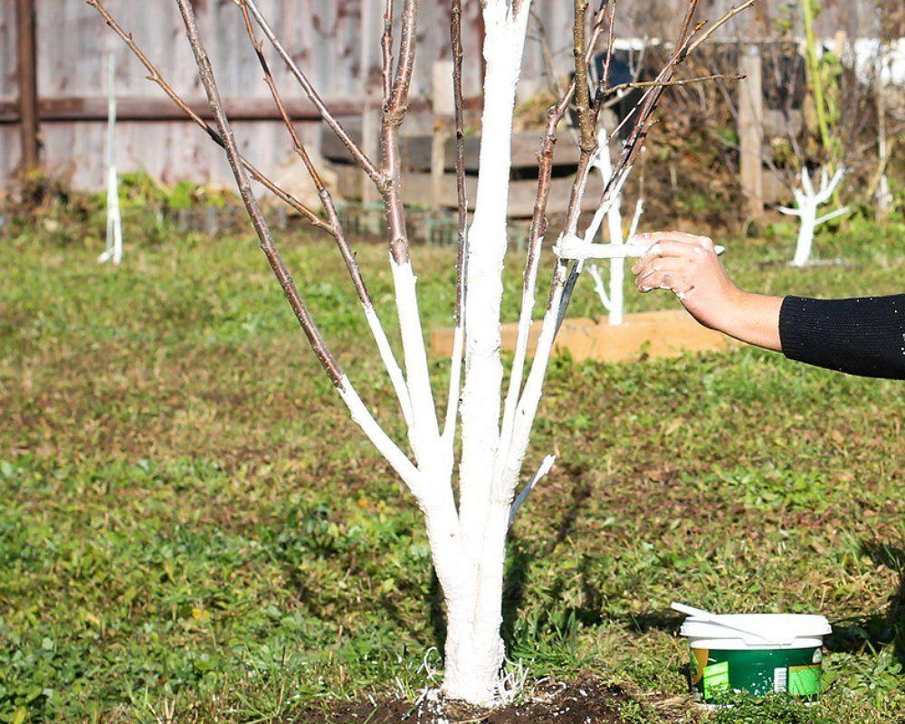 Эту процедуру рекомендуется проводить в середине-конце октября, после того как листья опадут. Рецепт приготовления побелки остается прежним, и в состав можно добавить средства, отпугивающие диких грызунов и зайцев.