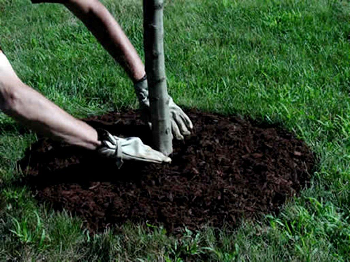 - Удалите остатки растений из приствольного круга и утилизируйте их за пределами участка или сожгите.