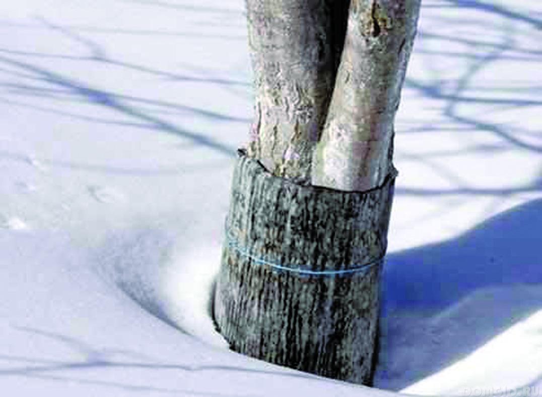 В регионах с холодными бесснежными зимами приствольный круг следует укрыть мешковиной или спанбондом. Зимой кора дерева привлекает зайцев и мышей, что может быть опасно для молодых саженцев. Стволы деревьев можно защитить, укрыв их лапником, рубероидом или обвив металлической сеткой.