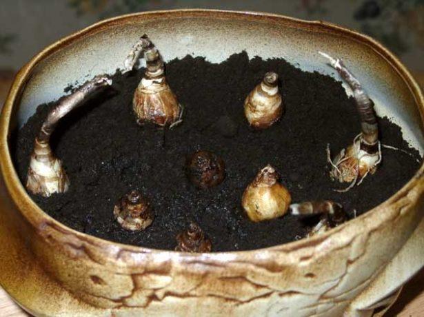 Вероятность цветения возрастет, если луковицы на протяжении двух недель будут находиться в цветочном горшке.