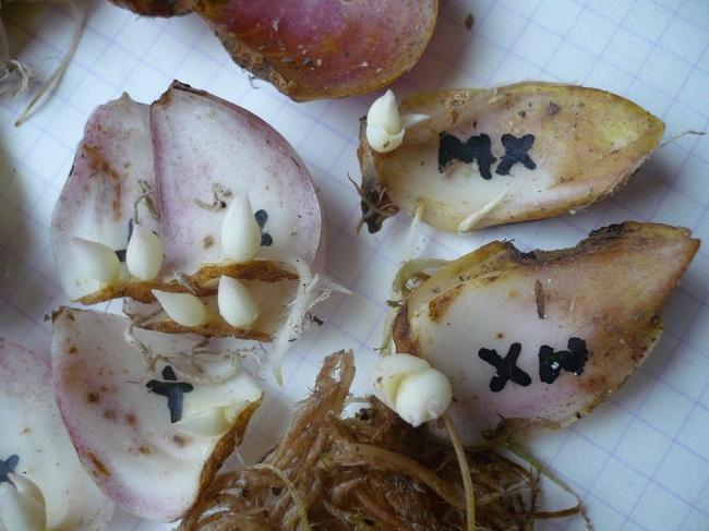 - семенами. Это размножение происходит естественным образом. Однако, если требуется получить новый сорт, то с помощью кисточки растение опыляют искусственно, после чего пестик оборачивают фольгированной бумагой. Когда коробочки с семенами созреют, их собирают и пересаживают в субстрат или мох. Через 60-90 дней появятся маленькие луковички, которые затем помещают в холод на 3 месяца.