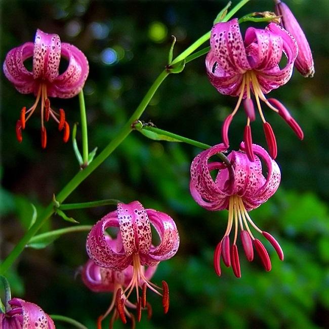 | Мартагон лилия (Лилиум кудреватый) | Цветы чалмовидной формы, поникшие, розовые, лиловые или белые, часто с крапинками. | Европа и Азия (от Испании до Сибири). |