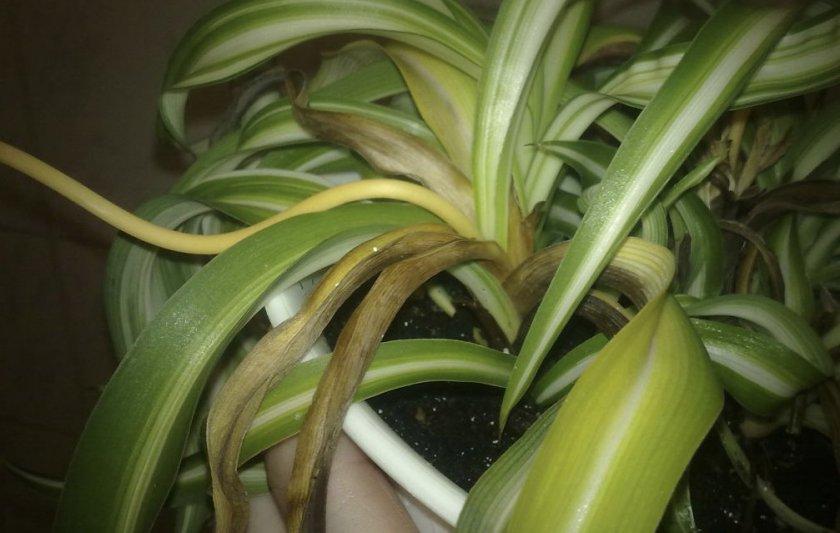 Если заболевание затронуло верхнюю часть растения, и ствол стал черным, а листья начали темнеть, то спасти пораженный куст уже не получится. В такой ситуации единственным выходом будет черенкование. Оставить хлорофитум в таком состоянии невозможно, и лечение не принесет результатов.