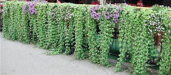 Уход и размножение: Дихондра легко размножается черенками или семенами. При правильном уходе, включая регулярный полив и подкормку, она может быстро покрыть большие площади, создавая эффектный водопад из зелени или серебристых листьев, что делает ее популярным выбором для вертикального озеленения и ампельных композиций.