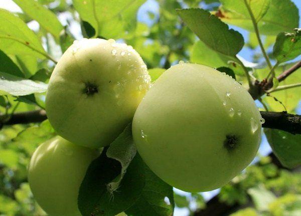 Яблоки обладают зеленовато-желтым цветом и не имеют красного румянца. На стадии съемной зрелости фрукты покрыты белым налетом. Кожура отличается приятным ароматом и гладкостью, а в период полной зрелости она становится нежно-белой.