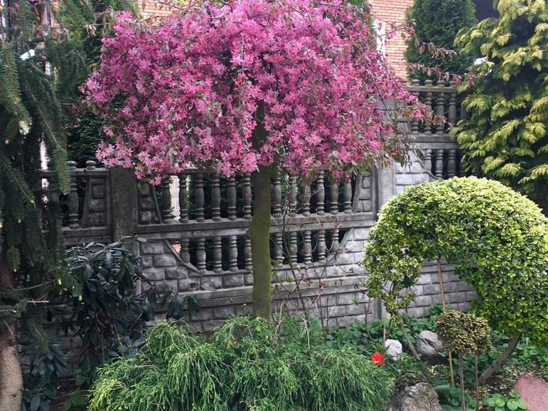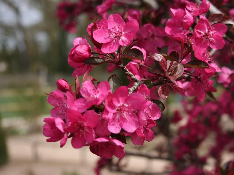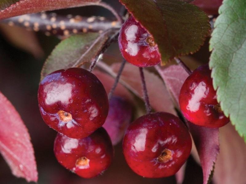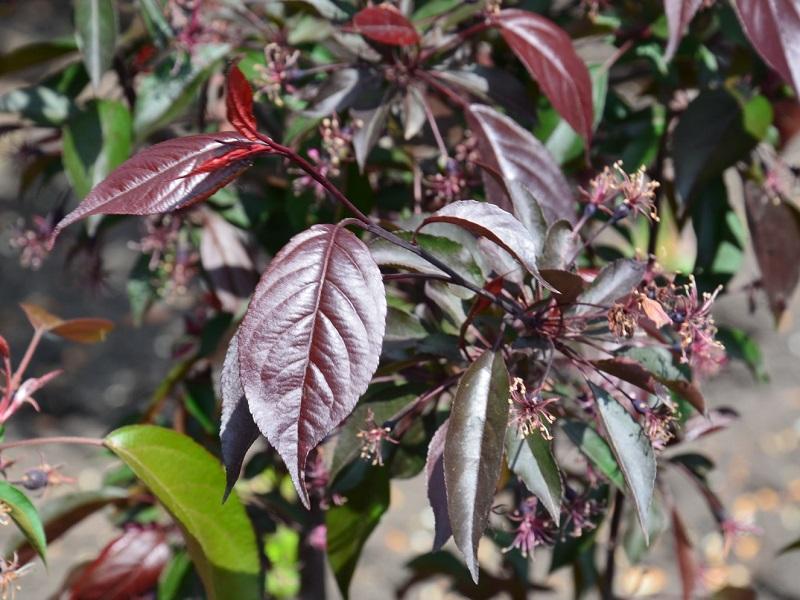 | Внешний вид | Небольшое дерево или крупный кустарник, высотой до 4-6 м, с округлой или широкопирамидальной кроной. Листья темно-пурпурные, блестящие, сохраняют цвет до осени. Цветки ярко-пурпурно-красные, крупные, обильные. Плоды мелкие (до 2 см), темно-красные, съедобные, но терпкие, долго держатся на ветвях. | Регулярная обрезка для формирования кроны и удаления сухих/поврежденных ветвей. |
