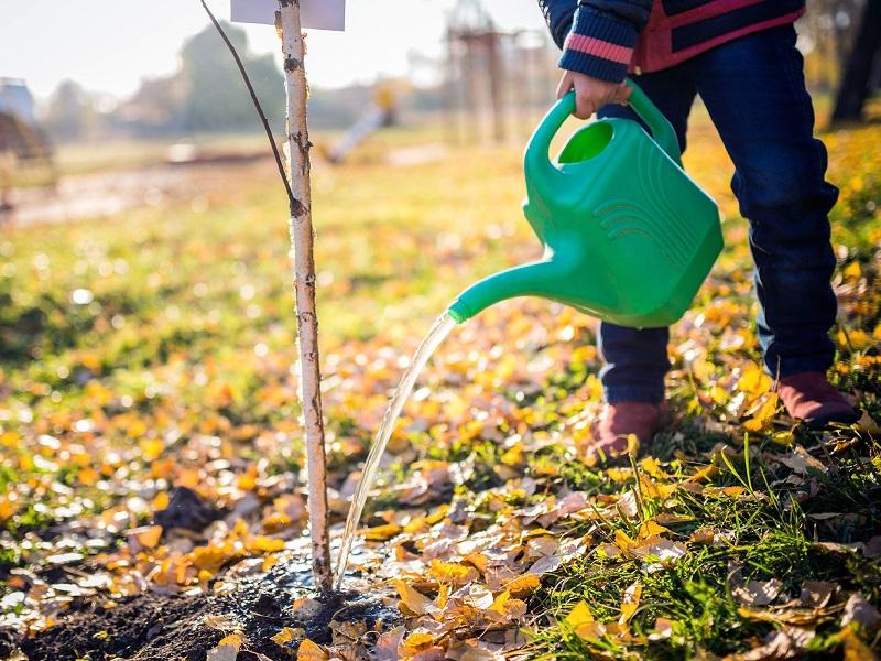 - Тщательно утрамбовать почву вокруг ствола и полить, используя 15-20 ведер теплой отстоянной воды. Для лучшего удержания влаги в почве рекомендуется провести мульчирование.