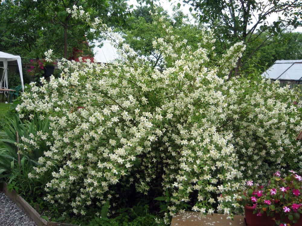 С ним в красоте может соперничать лишь жасмин желтолистный, который относится к роду чубушников.