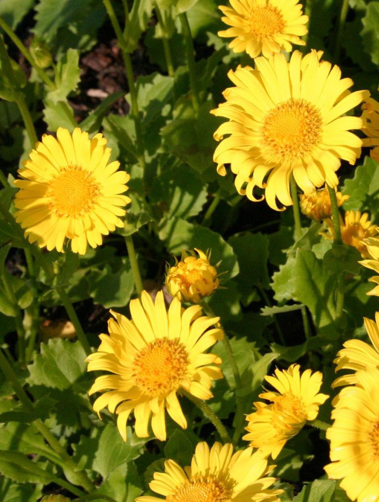 Дороникум — это удивительный цветок, который может изменять размеры своих лепестков и насыщенность окраски в зависимости от погодных условий. Внешне его цветочки напоминают миниатюрные ромашки, что часто приводит к путанице с пиретрумом. Лепестки имеют ярко-желтый оттенок, а центральная часть может варьироваться от темного желтого до коричневого. Диаметр соцветий колеблется от 4 до 15 см в зависимости от конкретного сорта.